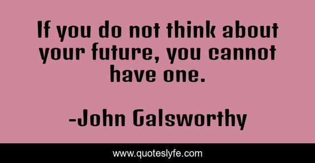 This page presents the quote "If you do not think about your future, you cannot have one.". Author of this quote is John Galsworthy. This quote is about cannot, think,.
