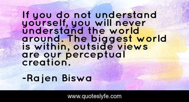 This page presents the quote "If you do not understand yourself, you will never understand the world around. The biggest world is within, outside views are our perceptual creation.". Author of this quote is Rajen Biswa. This quote is about meaning-of-life, truth-of-life,.