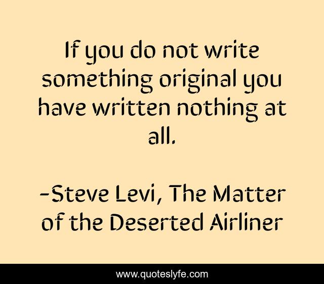 "Steve Levi, The Matter of the Deserted Airliner Quotes." Quoteslyfe.com, 2025. Fri. 05 Dec. 2025. <https://www.quoteslyfe.com/quote/If-you-do-not-write-something-original-200570>.