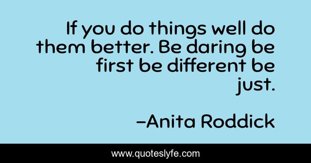 This page presents the quote "If you do things well do them better. Be daring be first be different be just.". Author of this quote is Anita Roddick. .