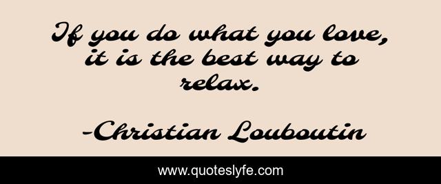 This page presents the quote "If you do what you love, it is the best way to relax.". Author of this quote is Christian Louboutin. This quote is about best, relax,.