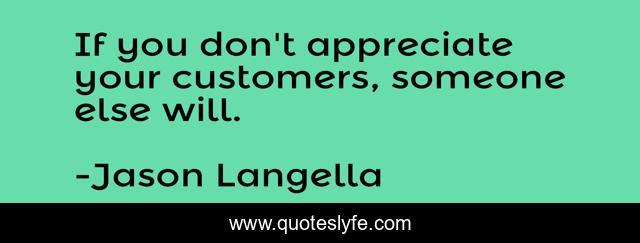 This page presents the quote "If you don't appreciate your customers, someone else will.". Author of this quote is Jason Langella. This quote is about customer-satisfaction, customers, management, business-advice, business, business-management-training, customer-relations, entrepreneurship, entrepreneur,.