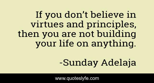 This page presents the quote "If you don’t believe in virtues and principles, then you are not building your life on anything.". Author of this quote is Sunday Adelaja. This quote is about building, principles, life, virtues, belief,.