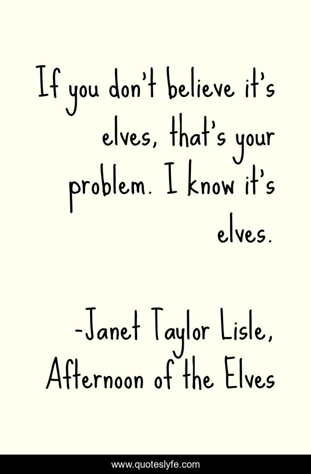 This page presents the quote "If you don't believe it's elves, that's your problem. I know it's elves.". Author of this quote is Janet Taylor Lisle, Afternoon of the Elves. .