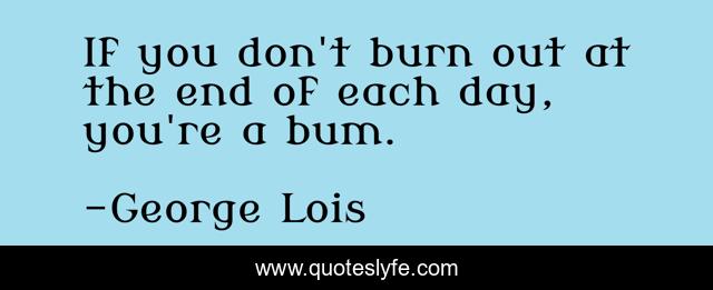 This page presents the quote "If you don't burn out at the end of each day, you're a bum.". Author of this quote is George Lois. This quote is about motivation, hard-work, inspiration,.