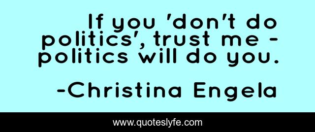 "Christina Engela Quotes." Quoteslyfe.com, 2025. Sat. 06 Dec. 2025. <https://www.quoteslyfe.com/quote/If-you-don-t-do-politics-trust-57399>.