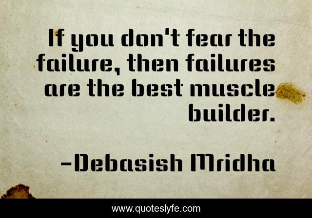 This page presents the quote "If you don't fear the failure, then failures are the best muscle builder.". Author of this quote is Debasish Mridha. This quote is about life, love, knowledge, inspirational, intelligence, philosophy, wisdom, quotes, affection,.