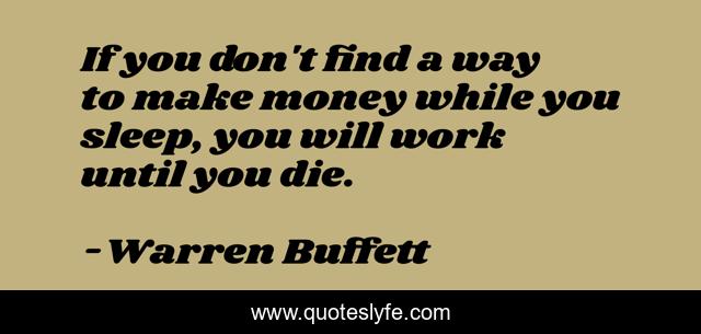 This page presents the quote "If you don't find a way to make money while you sleep, you will work until you die.". Author of this quote is Warren Buffett. .