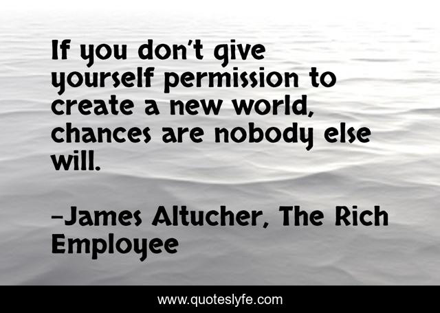 This page presents the quote "If you don’t give yourself permission to create a new world, chances are nobody else will.". Author of this quote is James Altucher, The Rich Employee. This quote is about self-realization, nonconformity, creation, creativity, permission,.