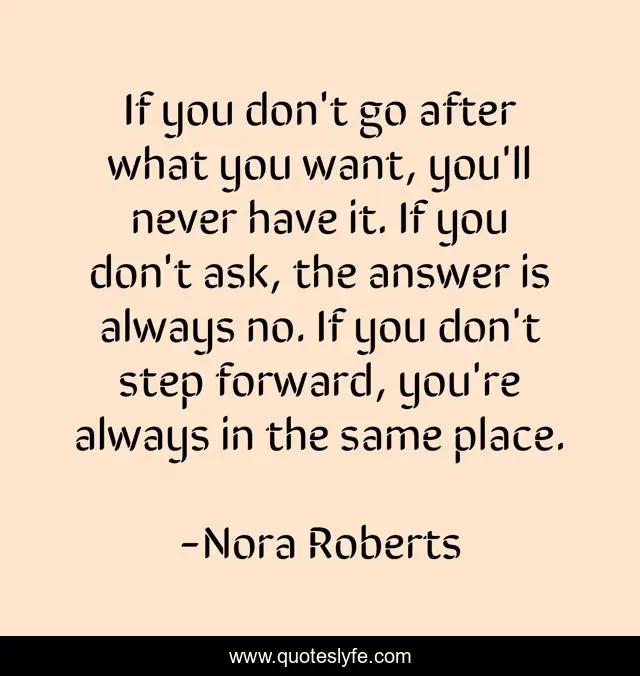 This page presents the quote "If you don't go after what you want, you'll never have it. If you don't ask, the answer is always no. If you don't step forward, you're always in the same place.". Author of this quote is Nora Roberts. This quote is about enthusiasm, inspirational,.