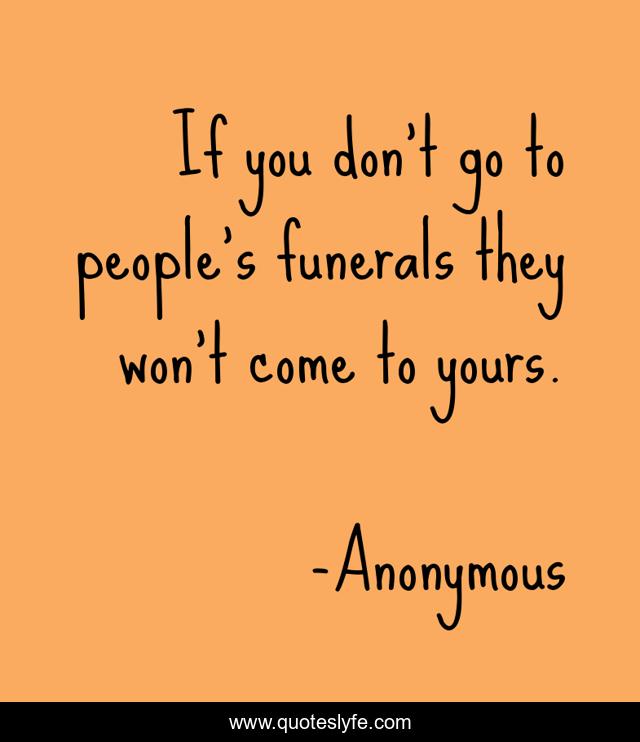 This page presents the quote "If you don't go to people's funerals they won't come to yours.". Author of this quote is Anonymous. This quote is about life, death,.