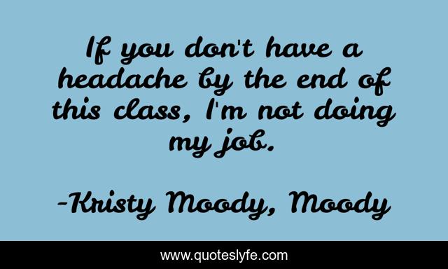 This page presents the quote "If you don't have a headache by the end of this class, I'm not doing my job.". Author of this quote is Kristy Moody, Moody. .