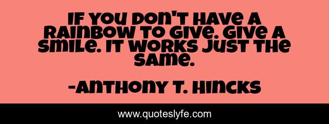 This page presents the quote "If you don't have a rainbow to give. Give a smile. It works just the same.". Author of this quote is Anthony T. Hincks. This quote is about rainbow, life, peace, love, give, kindness, philosophy, same, affection,.