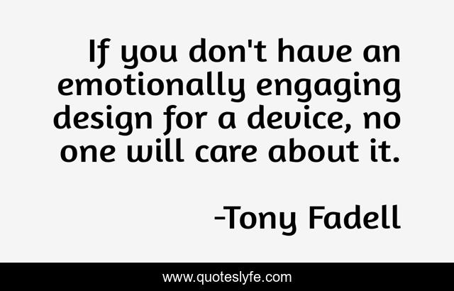 This page presents the quote "If you don't have an emotionally engaging design for a device, no one will care about it.". Author of this quote is Tony Fadell. .
