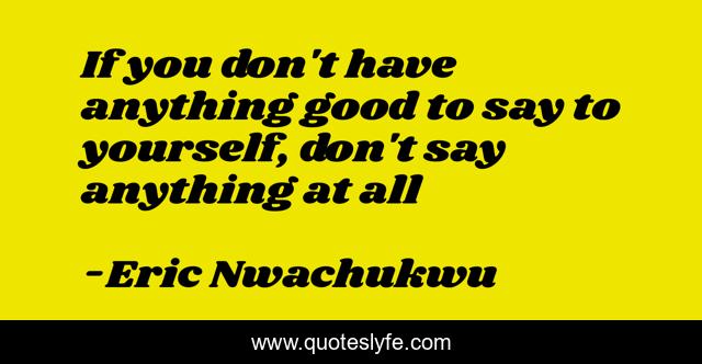 This page presents the quote "If you don't have anything good to say to yourself, don't say anything at all". Author of this quote is Eric Nwachukwu. .