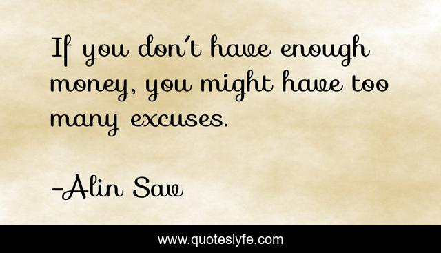This page presents the quote "If you don´t have enough money, you might have too many excuses.". Author of this quote is Alin Sav. This quote is about positive, confidence, motivational, optimistic, business,.
