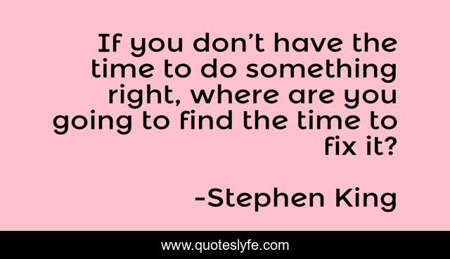 This page presents the quote "If you don’t have the time to do something right, where are you going to find the time to fix it?". Author of this quote is Stephen King. This quote is about enthusiasm, inspirational,.