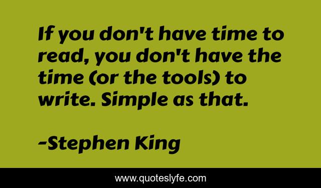 This page presents the quote "If you don't have time to read, you don't have the time (or the tools) to write. Simple as that.". Author of this quote is Stephen King. This quote is about reading, writing,.