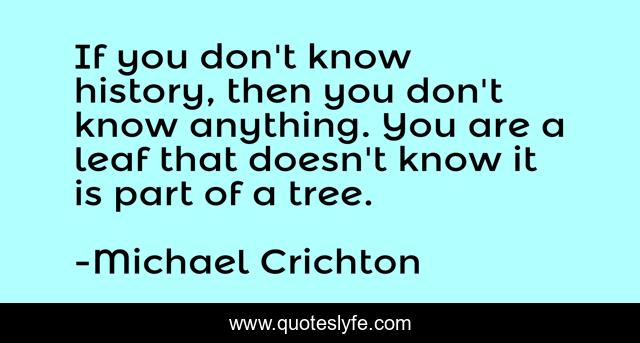 This page presents the quote "If you don't know history, then you don't know anything. You are a leaf that doesn't know it is part of a tree.". Author of this quote is Michael Crichton. .