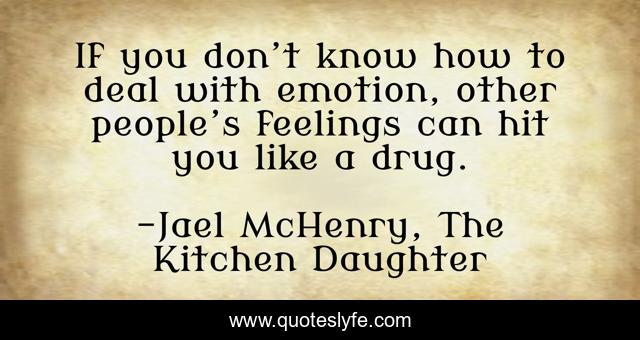 This page presents the quote "If you don’t know how to deal with emotion, other people’s feelings can hit you like a drug.". Author of this quote is Jael McHenry, The Kitchen Daughter. This quote is about emotion, emotions, aspergers, drug, feelings,.