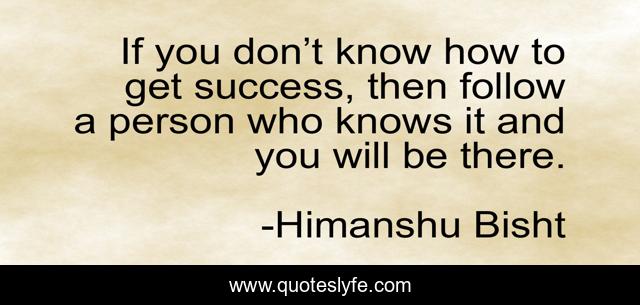This page presents the quote "If you don’t know how to get success, then follow a person who knows it and you will be there.". Author of this quote is Himanshu Bisht. This quote is about life, mlmtalkies, success, entrepreneurship,.