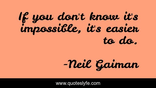 This page presents the quote "If you don't know it's impossible, it's easier to do.". Author of this quote is Neil Gaiman. This quote is about quote, art, inspiration,.