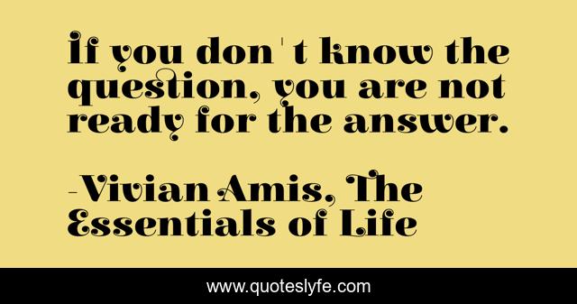 This page presents the quote "If you don't know the question, you are not ready for the answer.". Author of this quote is Vivian Amis, The Essentials of Life. This quote is about seeking, communication, question, answers, seeker, hear, truth, god, listen,.