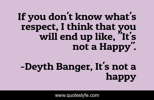 This page presents the quote "If you don't know what's respect, I think that you will end up like, "It's not a Happy".". Author of this quote is Deyth Banger, It's not a happy. This quote is about respect, end, up, learn,.