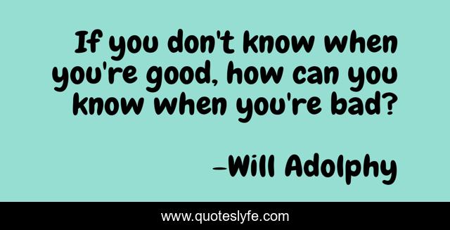 This page presents the quote "If you don't know when you're good, how can you know when you're bad?". Author of this quote is Will Adolphy. This quote is about enthusiasm, psychology, inspirational, insightful,.