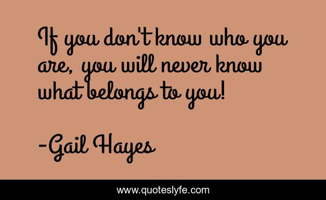 This page presents the quote "If you don't know who you are, you will never know what belongs to you!". Author of this quote is Gail Hayes. This quote is about image, life-and-living, purpose-of-life, destiny, inspiration,.