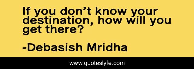 This page presents the quote "If you don’t know your destination, how will you get there?". Author of this quote is Debasish Mridha. This quote is about philosophy, destination, debasish-mridha, quotes, life-journey, inspirational, enthusiasm, debasish-mridha-m-d,.