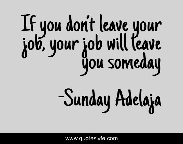 This page presents the quote "If you don’t leave your job, your job will leave you someday". Author of this quote is Sunday Adelaja. This quote is about independent, life, blessing, depend, finance, dependent, money, work, dependence,.