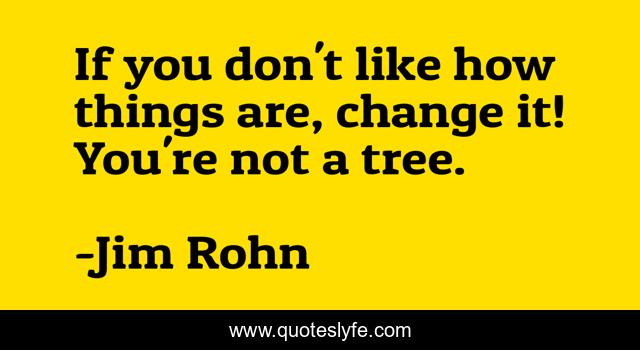 This page presents the quote "If you don't like how things are, change it! You're not a tree.". Author of this quote is Jim Rohn. This quote is about tree, change,.