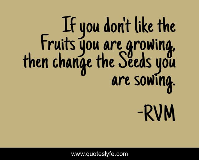 This page presents the quote "If you don't like the Fruits you are growing, then change the Seeds you are sowing.". Author of this quote is RVM. This quote is about motivation, inspiration,.