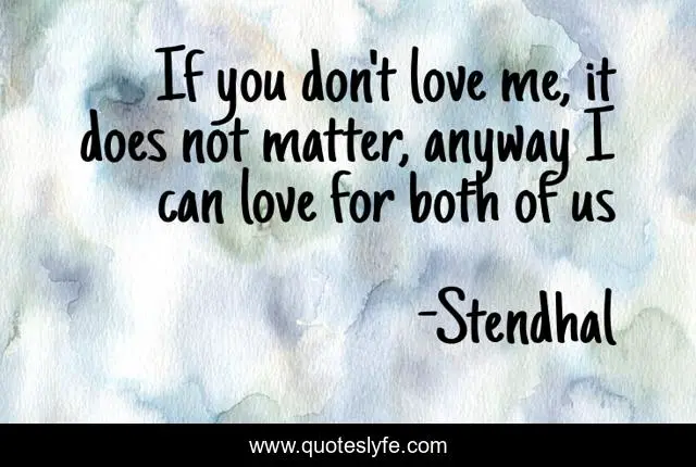 This page presents the quote "If you don't love me, it does not matter, anyway I can love for both of us". Author of this quote is Stendhal. This quote is about love, affection,.