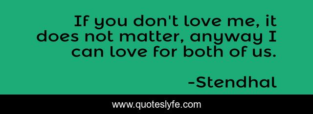 This page presents the quote "If you don't love me, it does not matter, anyway I can love for both of us.". Author of this quote is Stendhal. This quote is about me, romantic,.