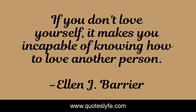 This page presents the quote "If you don't love yourself, it makes you incapable of knowing how to love another person.". Author of this quote is Ellen J. Barrier. This quote is about caring, self-love, empathy, love, compassion, sympathy, passion, passionate, affection,.