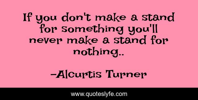 This page presents the quote "If you don't make a stand for something you'll never make a stand for nothing..". Author of this quote is Alcurtis Turner. This quote is about being-a-man, rights, stand, truth, being-a-woman, stand-up,.