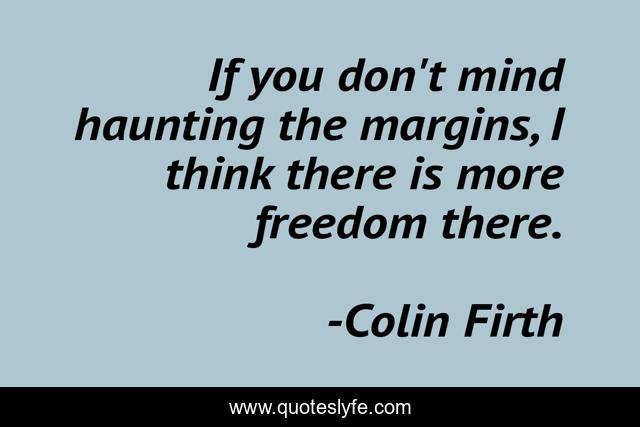 This page presents the quote "If you don't mind haunting the margins, I think there is more freedom there.". Author of this quote is Colin Firth. This quote is about mind, think,.
