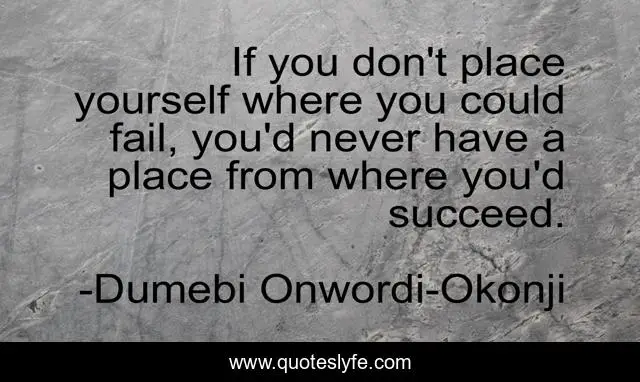 This page presents the quote "If you don't place yourself where you could fail, you'd never have a place from where you'd succeed.". Author of this quote is Dumebi Onwordi-Okonji. .
