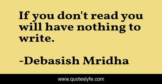 This page presents the quote "If you don't read you will have nothing to write.". Author of this quote is Debasish Mridha. This quote is about life, debasish, read, mridha, philosophy, write,.