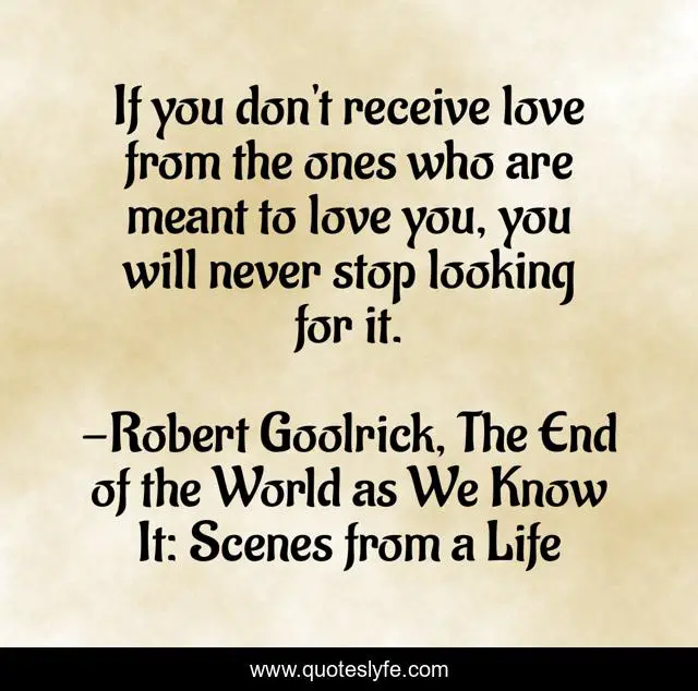 "Robert Goolrick, The End of the World as We Know It: Scenes from a Life Quotes." Quoteslyfe.com, 2025. Sun. 07 Dec. 2025. <https://www.quoteslyfe.com/quote/If-you-don-t-receive-love-from-469>.