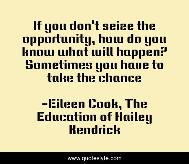 "Eileen Cook, The Education of Hailey Kendrick Quotes." Quoteslyfe.com, 2025. Sat. 06 Dec. 2025. <https://www.quoteslyfe.com/quote/If-you-don-t-seize-the-opportunity-252837>.