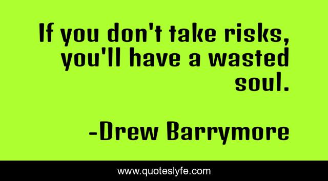 This page presents the quote "If you don't take risks, you'll have a wasted soul.". Author of this quote is Drew Barrymore. This quote is about risk, soul, risks, carpe-diem, bravery, adventure,.