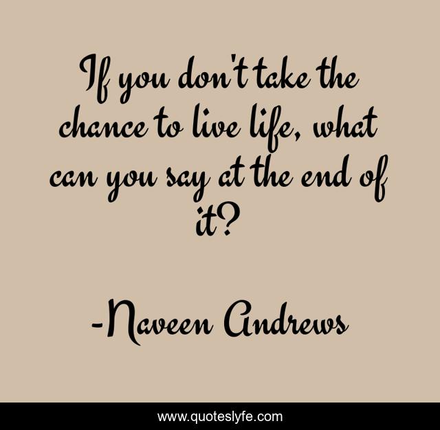 This page presents the quote "If you don't take the chance to live life, what can you say at the end of it?". Author of this quote is Naveen Andrews. This quote is about life, end, live life,.