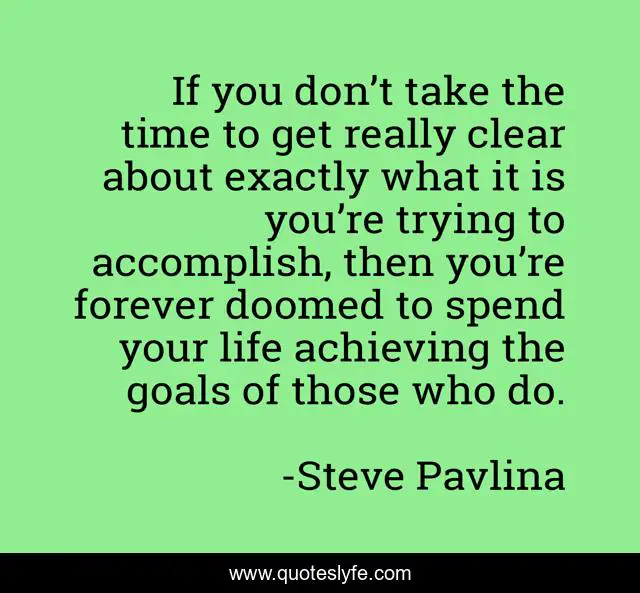 If you don’t take the time to get really clear about exactly what it is you’re trying to accomplish, then you’re forever doomed to spend your life achieving the goals of those who do.