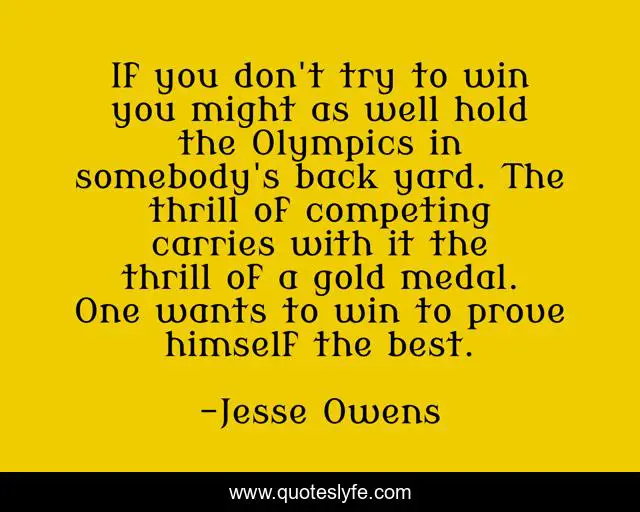 This page presents the quote "If you don't try to win you might as well hold the Olympics in somebody's back yard. The thrill of competing carries with it the thrill of a gold medal. One wants to win to prove himself the best.". Author of this quote is Jesse Owens. This quote is about jesse-owens, gold-medal, olympics, winning,.