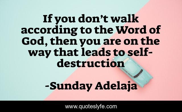 This page presents the quote "If you don’t walk according to the Word of God, then you are on the way that leads to self-destruction". Author of this quote is Sunday Adelaja. This quote is about self-destruction, wisdom-inspirational, words-of-wisdom,.
