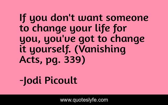 This page presents the quote "If you don't want someone to change your life for you, you've got to change it yourself. (Vanishing Acts, pg. 339)". Author of this quote is Jodi Picoult. .
