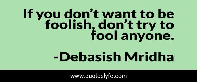 This page presents the quote "If you don’t want to be foolish, don’t try to fool anyone.". Author of this quote is Debasish Mridha. This quote is about fool, miraboli, oscar-wilde, don-t-be-foolish, philosophy, debasish-mridha, don-t-want-to-be-foolish, fool-anyone, quotes,.